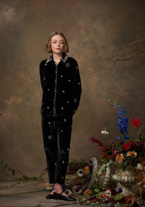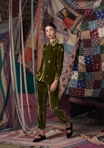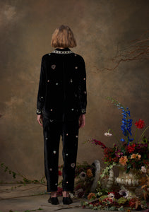 Fern Pants Emerald Velvet with Heart Embroidery