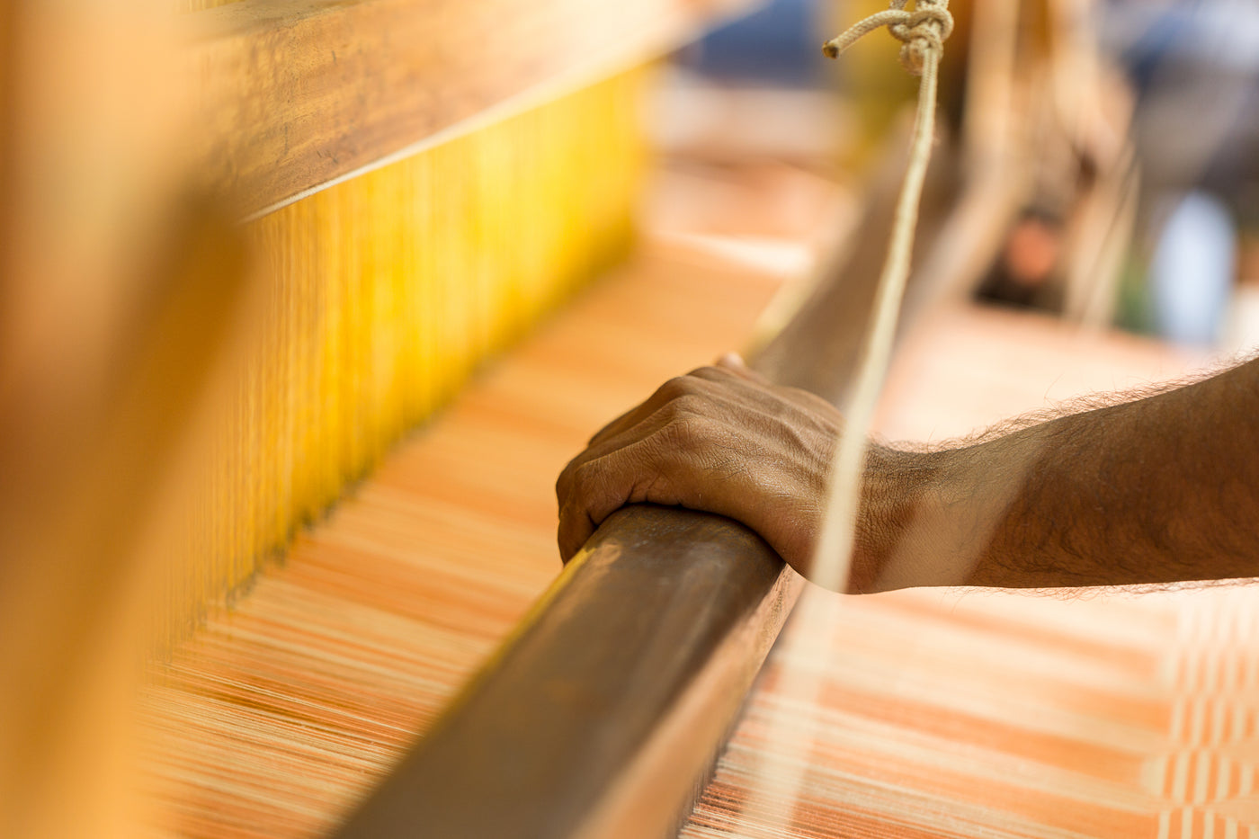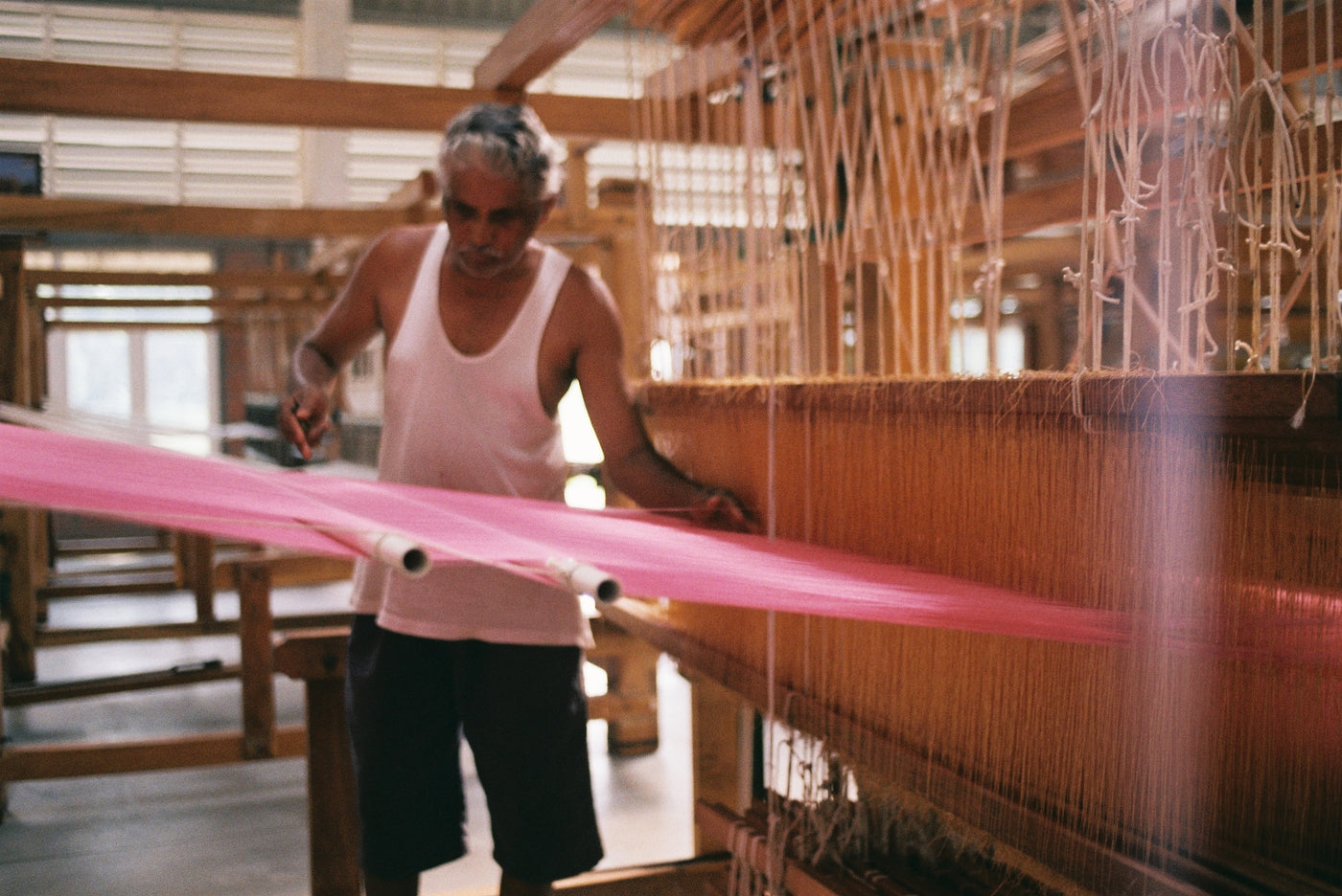 We use hand-spun organic cotton, woven using traditional techniques on handmade looms through an NGO that revived one of the last remaining fabric mills in Tamil Nadu, India. The ethos at this weaving cooperative is to change the lives of the weavers in the rural village of Chennimalai in India, by teaching ancient loom techniques that risked being lost in their entirety.