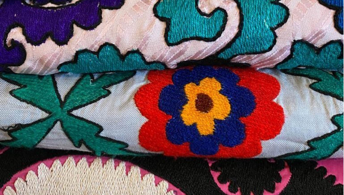 The name Suzani comes from the Persian word ‘suzan’ or ‘needle’. These panels were traditionally made by Central Asian brides' families as part of their dowry, and were presented to the groom on the wedding day.